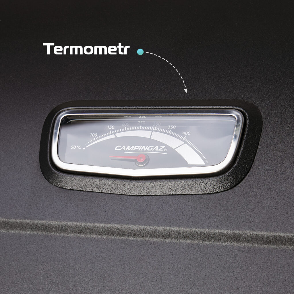 Wykonana z podwójnie tłoczonej stali pokrywa zapobiega utracie ciepła. Znajdziesz na niej wbudowany termometr, który pomoże Ci wyregulować temperaturę.