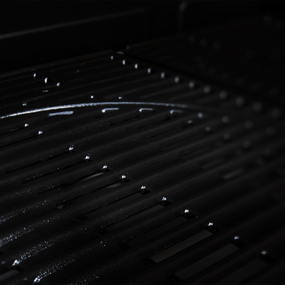 Mocny system grzewczy wykonany z wysokiej jakości stali nierdzewnej. Jest trwały, odporny na korozję i zaprojektowany do intensywnego użytkowania. Ochrona palnika została zintegrowana z żeliwnymi rusztami, eliminując potrzebę dodatkowej warstwy ochronnej pod powierzchnią do gotowania. Dzięki temu gorący tłuszcz i soki nie zbierają się w komorze ogniowej, co zapobiega powstawaniu niebezpiecznych płomieni.